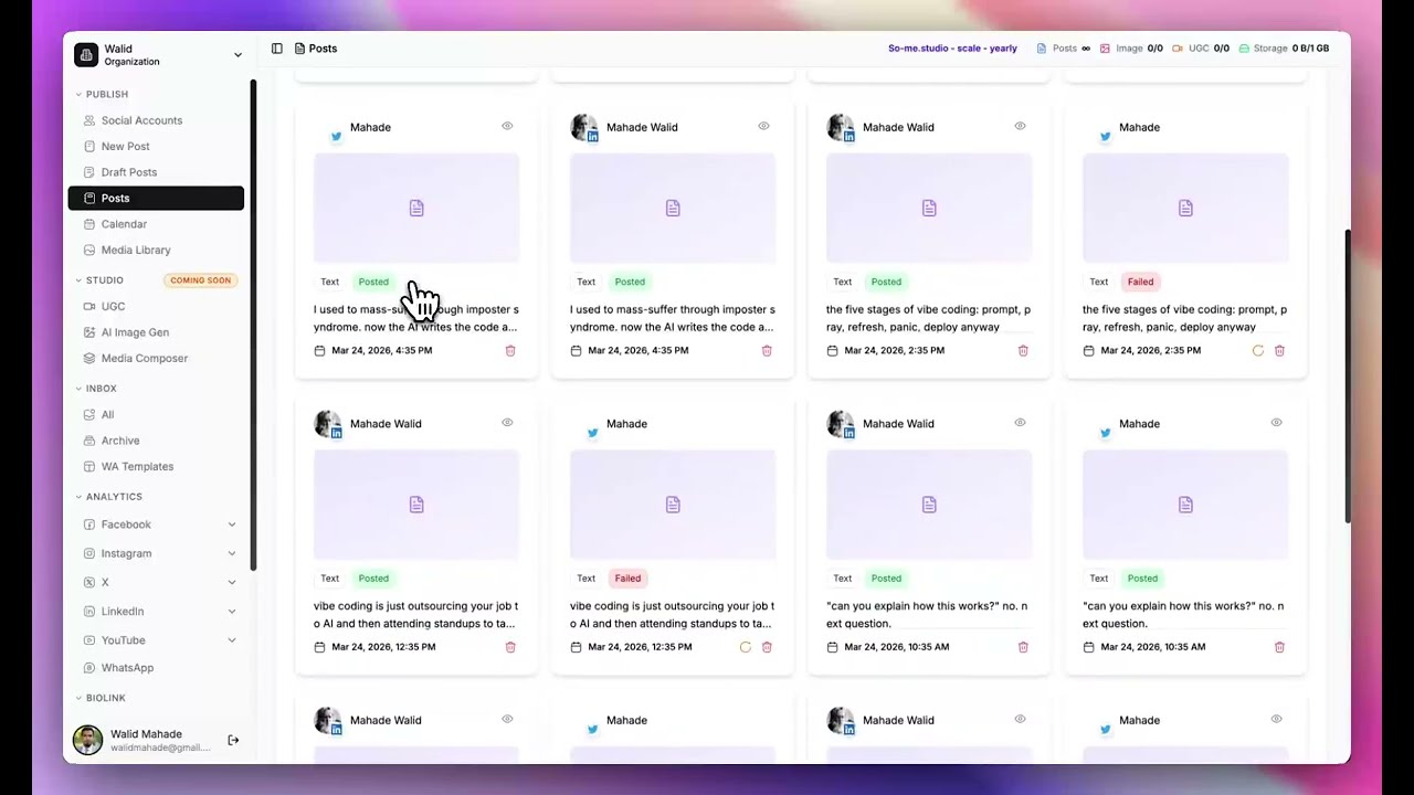 Plan, schedule, and publish & grow across all your social channels. We support both humans and AI agents. Experience the future of social media management with our all-in-one platform.